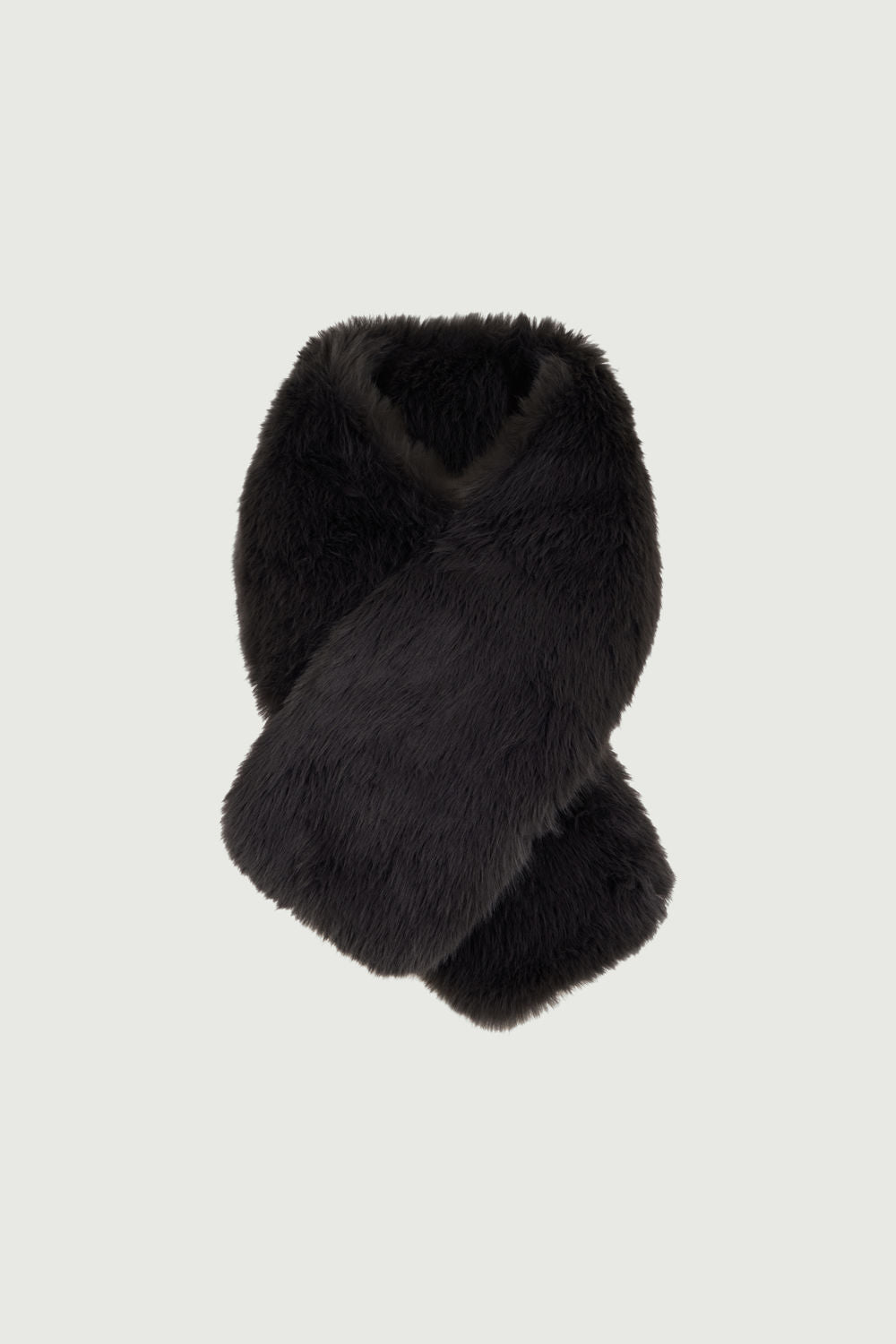 RUBY is a faux fur scarf. Dark anthracite in colour, with voluminous fur, this collar can be worn over a blazer or shirt to warm up a winter outfit.